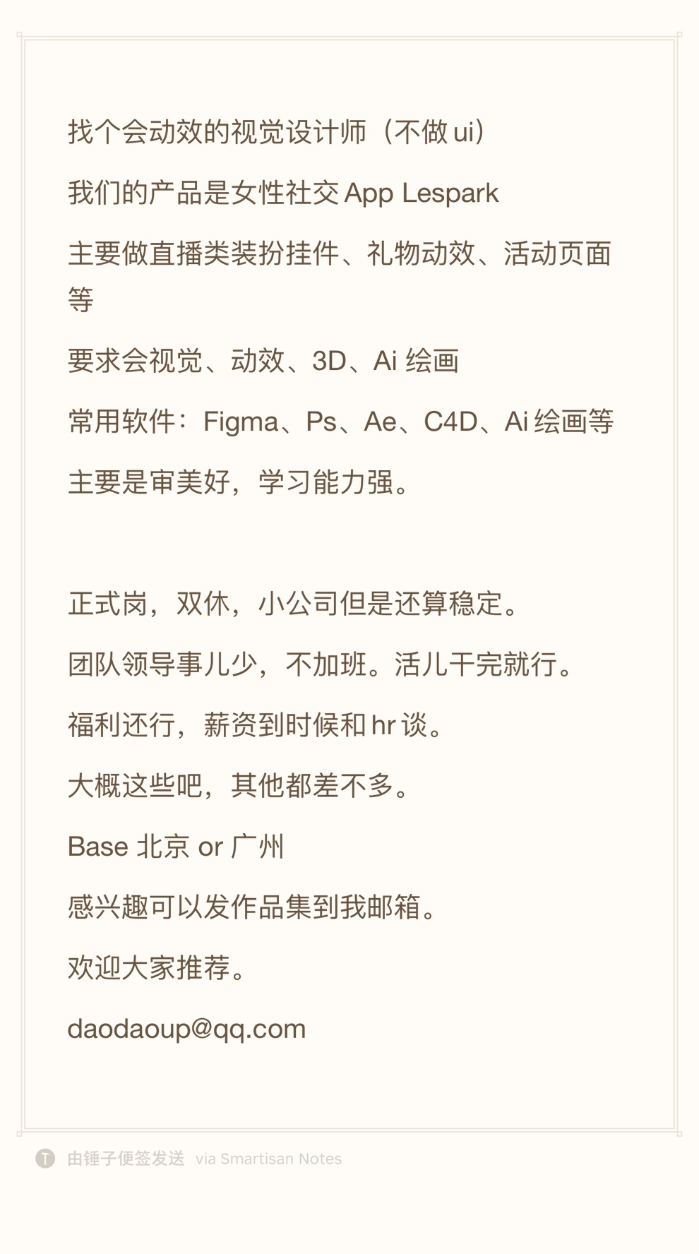 北京 / 3 年以上工作经验 - LesPark 招会动效的视觉设计师