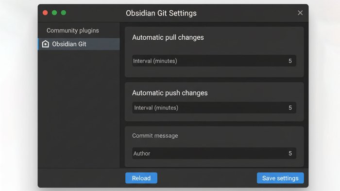 您是否還在黑色的終端機視窗中,手動輸入git pull或git push?這是意外的根源。 請安裝社群外掛 Obsidian Git。它可以設定定時自動同步,或是在Obsidian啟動與關閉時自動同步,從根本上杜絕因手動操作而「忘記同步」的問題。