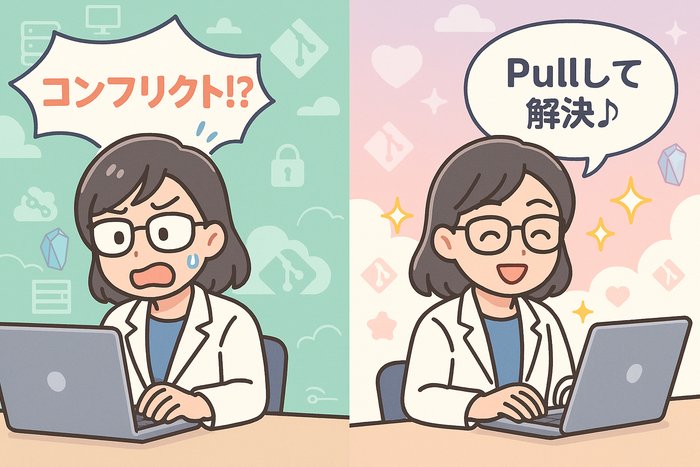 - 重點③: 衝突並非「資料遺失」,而是Git表示「無法判斷」的正常通知。只要不慌張,依照符號手動修正,資料就不會丟失。