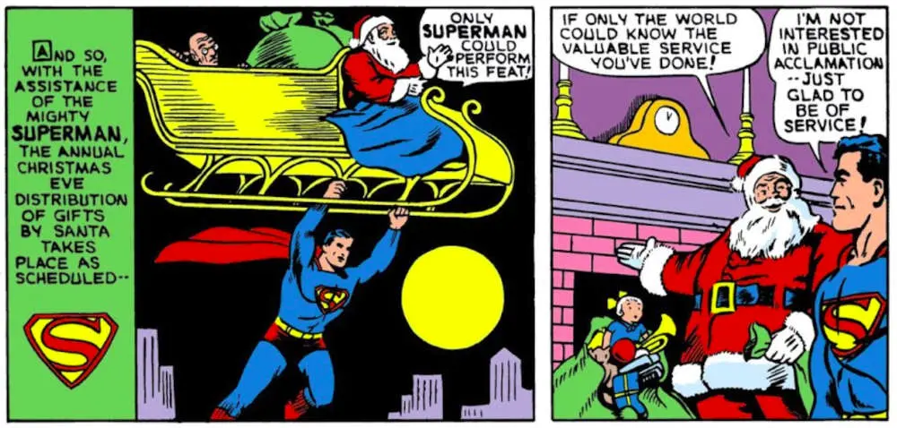 E ancora una volta ad aprire la strada a questa tradizione, più tipica del fumetto umoristico (in particolare dei funny animals) è stato proprio Superman con una Christmas Adventure datata 1940 e scritta da Jerry Siegel per i disegni di Jack Burnley.