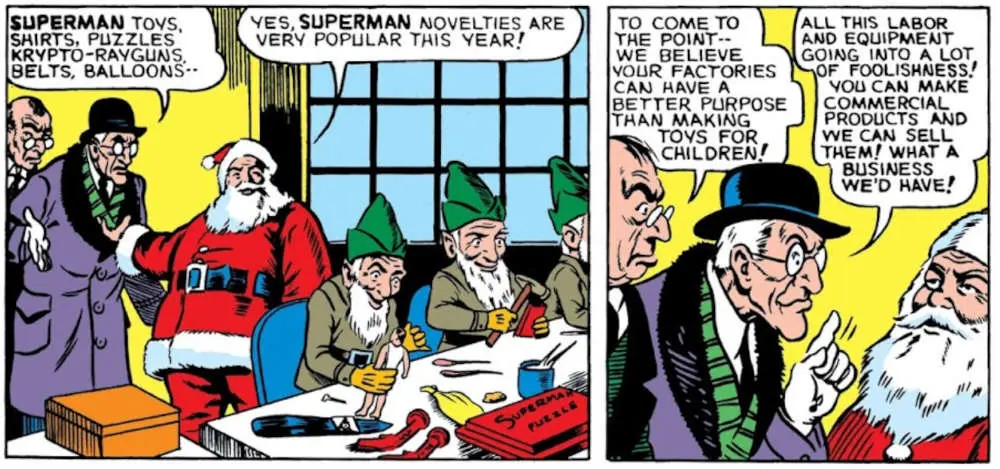 In soldoni la trama vede Superman andare in soccorso di Santa Claus del Dr. Grouch, un avido imprenditore, che ricorda lo Scrooge di Charlse Dickens, che vuole commercializzare il Natale, in puro spirito capitalista.