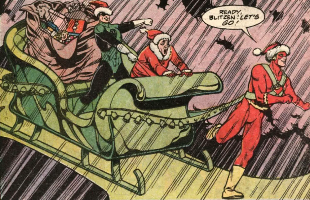 Questi è un albo antologico che vede storie scritte da vari autori. In particolare in Roll call di Bill Loebs per i disegni di Colleen Doran, Flash, in quel caso Barry Allen, e Lanterna Verde, in quel caso Hal Jordan, a un certo punto portano a spasso un tizio vestito da Babbo Natale a bordo di una slitta.