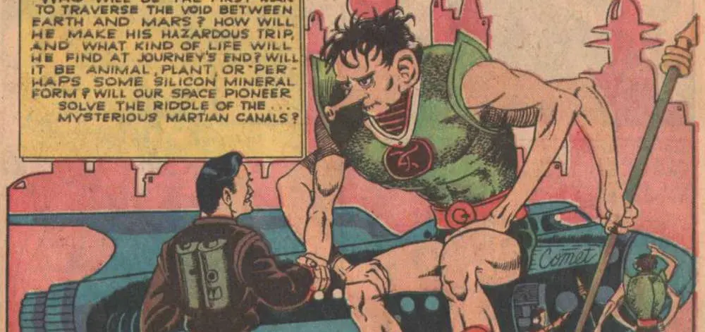 Per esempio, andando a cercare tra fumetti in pubblico dominio, si trovano albi come i britannici Mars Comics o Captain Conquest and the Men From Mars, o i classici albetti americani, per lo più di genere supereroistico, come Crusaders from Mars, Man O' Mars, concludendo con Attack On Planet Mars. Tutte queste riviste hanno in comune un punto narrativo fondamentale: il pianeta Marte è spesso coinvolto in azioni belliche, sia nate dagli abitanti di Marte, sia con il pianeta rosso come obiettivo dell'attacco. Le principali differenze, invece, sono nella rappresentazione dei marziani: in alcuni casi umanoidi, in altri quasi cartooneschi, in altri ancora una sorta di primati, in ogni caso una varietà di interpretazioni molto differenti dall'immagine che è giunta fino a noi degli omini verdi. In questo senso è interessante l'esperimento realizzato sulle pagine di Fight Comics #80 dove in Life On Other Worlds: Mars, il disegnatore Murphy Anderson immagina i marziani in base alle (per l'epoca) scarne informazioni su Marte.