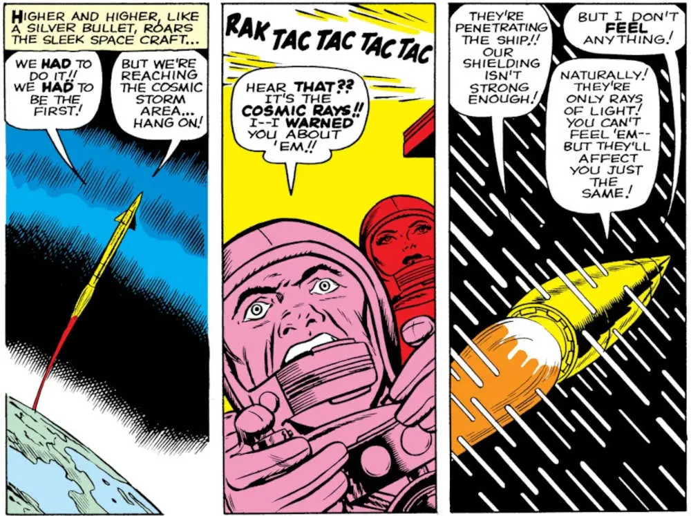 Di fatto l'interazione diretta con le radiazioni cosmiche porterebbe a modifiche del codice genetico, col rischio di generare malattie come tumori e simili, quindi le preoccupazioni di Ben erano più che ben riposte. Ovviamente nel Marvel Universe si arrivò a una spiegazione pseudo-scientifica per cui il quartetto invece di ammalarsi3 sviluppò dei superpoteri fantastici in cui l'interazione dei raggi cosmici con il loro DNA ha semplicemente attivato dei geni che erano presenti sin dall'inizio dentro di loro.