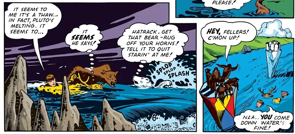 Protagonista è Norge Benson, che da un po' soggiorna su un Plutone, rappresentato come completamente innevato, un po' come una specie di unico e immenso Antartide (non a caso troviamo anche animali molto simili a quelli che circolano sui nostri poli). La storia in questione, disegnata da Al Walker e forse scritta da Olaf Bjorn, racconta dell'arrivo della primavera su Plutone dopo oltre 2 miliardi e mezzo di anni!