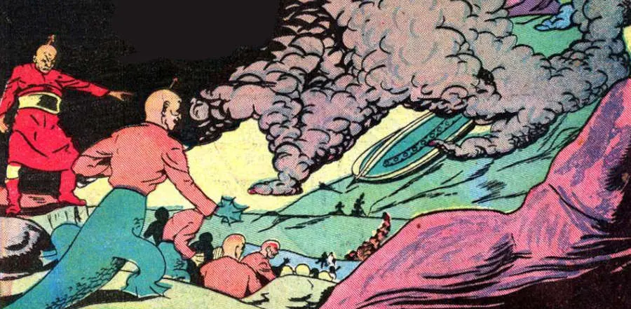 Pubblicata sul #3 , la storia, scritta da Herman Bolstein, ci propone una visione di Plutone piuttosto fantasiosa, ispirata soprattutto dal mistero che tale corpo celeste rivestiva. Il pianeta, infatti, venne rappresentato da (forse) Bob Powell come un oggetto roccioso e desertico abitato da una razza di anfibi umanoidi. La parte inferiore del loro corpo, infatti, richiama la coda dei rettili, dotata però di due piedi palmati, che ritroviamo anche al posto delle mani. La parte superiore per i tratti del viso e la colorazione ricorda, invece, il modo in cui venivano rappresentati all'epoca i cinesi, che nella letteratura pulp e dunque anche nei fumetti della golden age da essa derivati non rivestivano ruoli particolarmente edificanti.